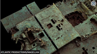 The stern section is a chaotic mess of metal. This results from the art of the section collapsing as it corkscrewed into the sea floor.